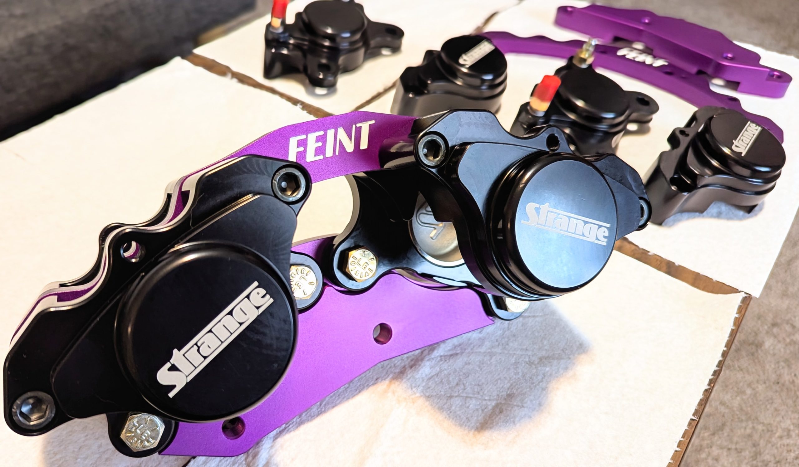 Feint kit is designed to work with Strange Engineering fixed 2 pistons calipers (sold separately).