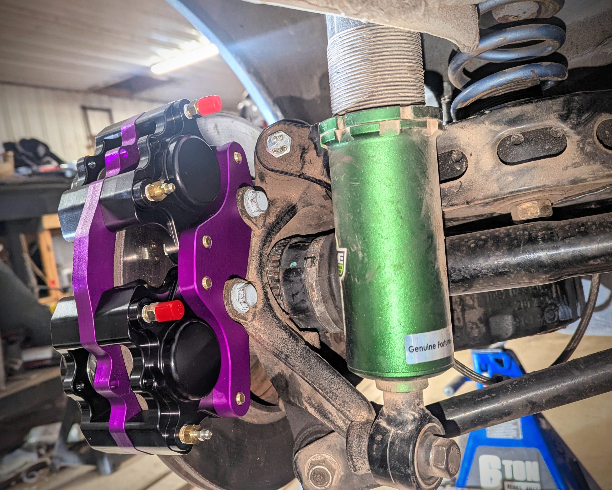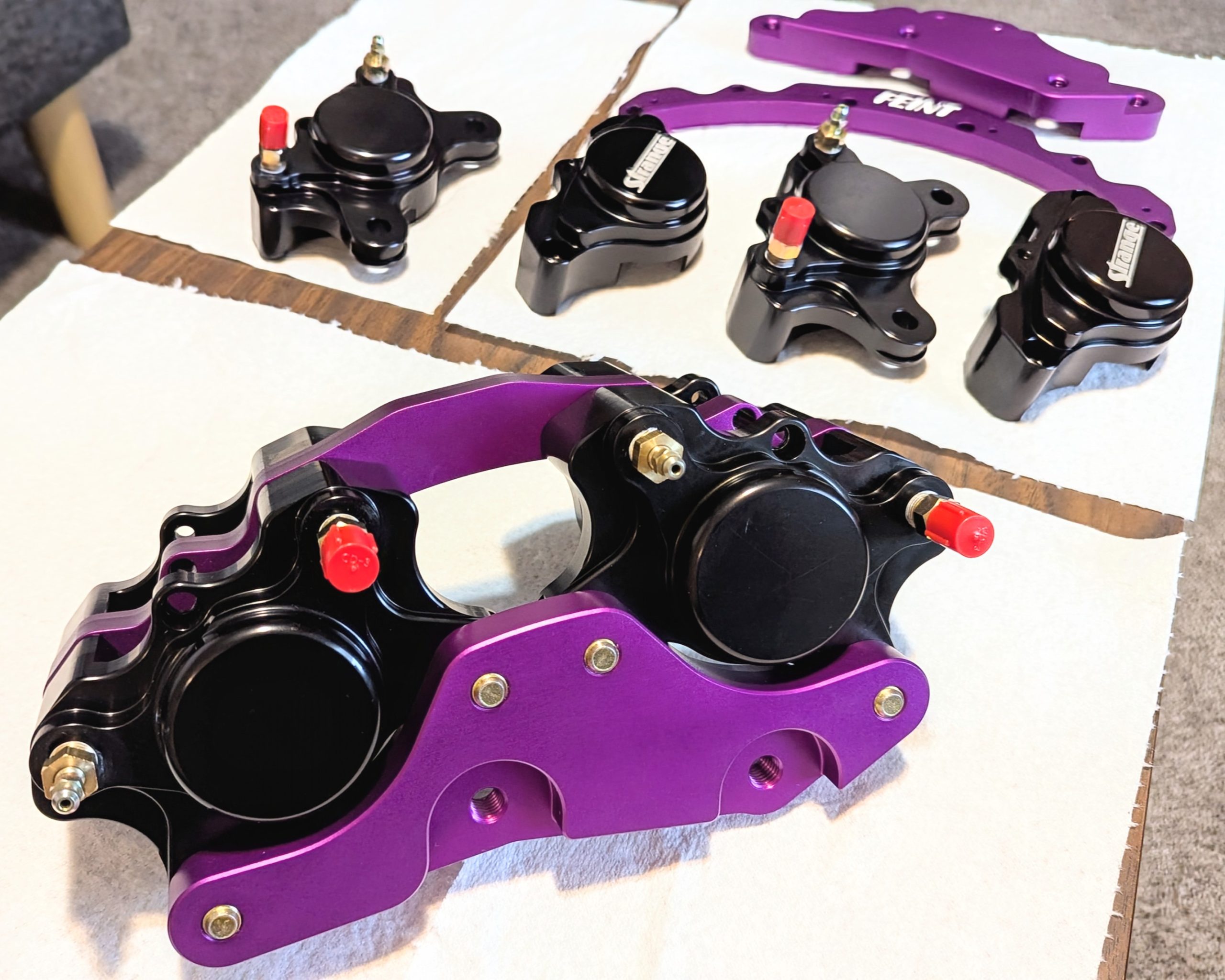 One caliper replaces the original for the foot brake and the other caliper is for a hydraulic handbrake.